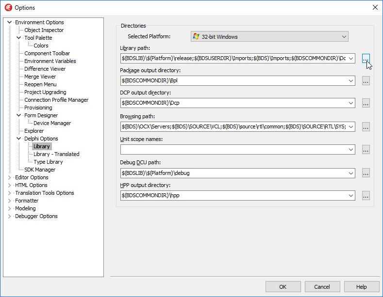 <ID>The design-time packages start with "Dcl..." and contain the units to register the package in the Delphi IDE and the property editors. These packages can only be build to target Win32, because the Delphi IDE is a 32bit application.